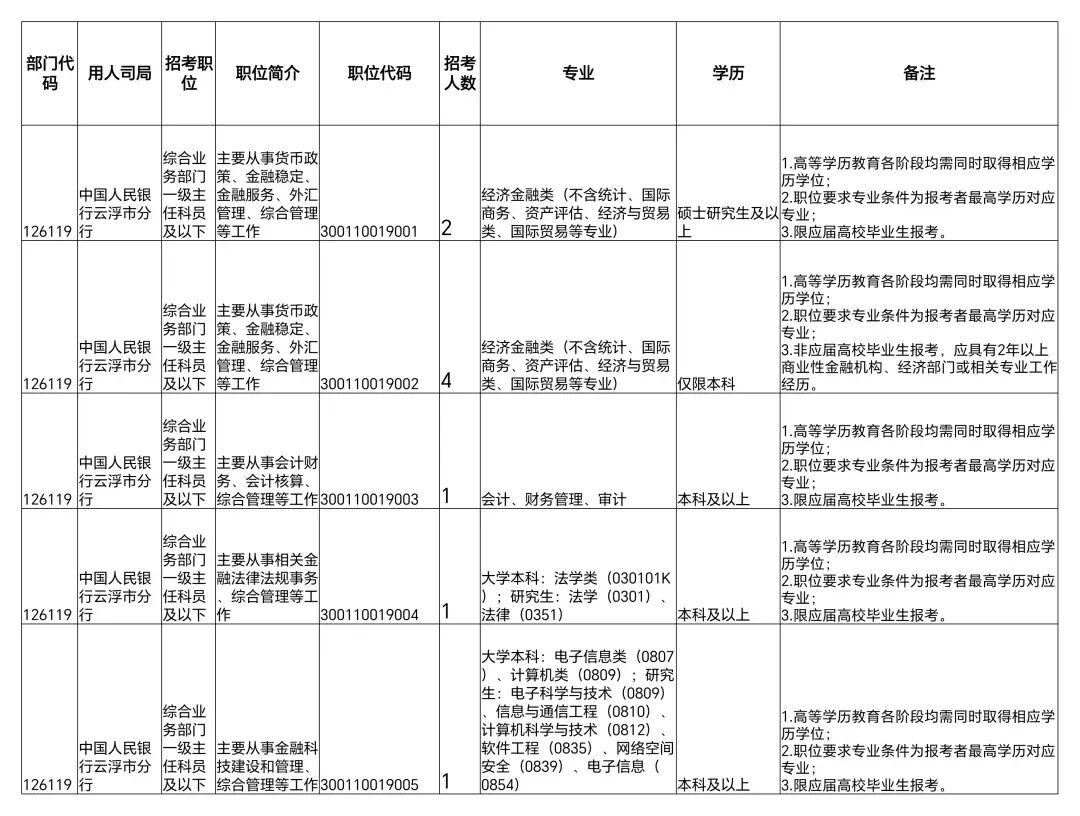 中国人民银行云浮市分行(国家外汇管理局云浮市分局)是中国人民银行、国家外汇管理局在云浮市的派出机构,主要职能是:贯彻执行国家有关法律、法规、方针、政策及上级行的有关规定;在辖区内贯彻执行货币信贷政策,监督管理金融市场,根据有关规定参与辖区系统性金融风险的防范化解,维护地区金融稳定;维护辖区支付结算系统的正常运行,负责大额和可疑支付交易报告制度的实施和反洗钱案件的协查;承担辖区内外汇管理、经理国库、货币发行及人民币流通管理、统计研究、征信管理、安全保卫、党的建设等职责。